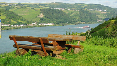 Wandern am bekanntesten Strom von Deutschland. Der Rheinsteig zwischen Bonn, Koblenz und Wiesbaden führt 320 km rechtsrheinisch bergauf und bergab zu Wäldern, Weinbergen und schönen Ausblicken.